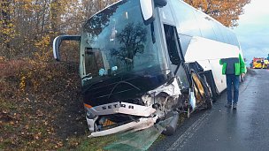 U Smečna na Kladensku havaroval autobus, srazil se s osobákem