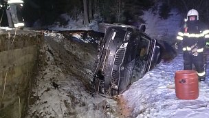 Osobní vozidlo se u Bartošovic v Orlických horách po nárazu do mostku převrátilo na bok