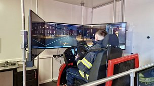 Profesionální hasiči z Chebska trénovali v bavorském Waldsassenu na simulátoru jízdy k zásahu