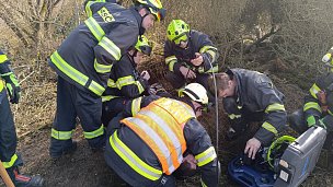 Video: Lovecký pes uvízl při dohledávání divočáka, vyprostit z nory jej museli přivolaní hasiči
