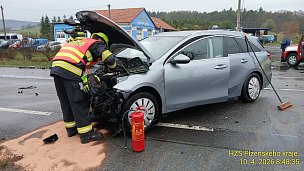 Profesionální jednotka ze stanice Holešov vyjížděla dnes v půl osmé ráno k dopravní nehodě osobního vozidla u obce Bořenovice na Holešovsku.