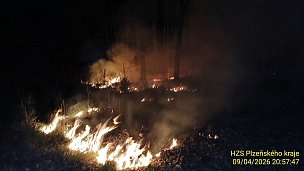 U Žihle hořel přírodní porost, oheň zasáhl plochu přibližně 200 × 50 metrů