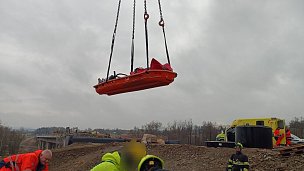 Zraněnou osobu z jímky na vodu vytáhl ve vakuové matraci stavební jeřáb