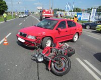 Po patnácté hodině došlo na hlavním tahu z Otrokovic do Zlína k dopravní nehodě osobního vozidla a motorkáře. Na žádost operačního střediska záchranářů byla na místo události vyslána jednotka profesionálních hasičů ze stanice Otrokovice.