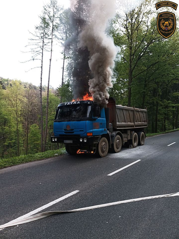 U Bohuslavic u Zlína musel krátce před polednem zastavit řidič nákladního auta, neboť mu vozidlo začalo hořet. Muž stihl jen zavolat na tísňovou linku. Naštěstí vyvázl bez zranění.