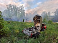 Po příjezdu na místo hasiči průzkumem zjistili, že požár zasáhl lesní školku o velikosti okolo 150×150 metrů a rychle se dál šířil. Hasiči ihned k likvidaci požáru nasadili celkem 10 útočných proudů vody. Na požářiště se dostavil územní řídící důstojník, který si převzal velení.