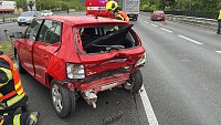 V ulici Strakonická zasahují profesionální hasiči u dopravní nehody tří osobních vozidel. Při nehodě byla zraněna jedna osoba, kterou ošetřila zdravotnická záchranná služba.