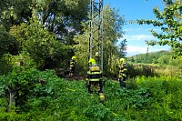 Čtyři jednotky hasičů se v neděli 2. června 2024 odpoledne zapojily do likvidace požáru čapího hnízda na sloupu vysokého napětí v Albrechtičkách.