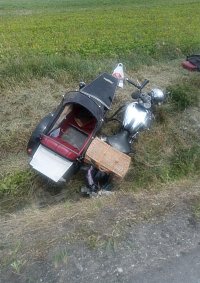Motocykl se sajdkárou havaroval v katastru obce Dětenice do příkopu