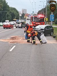 Nehoda osobního vozidla a dodávky odpoledne značně omezila provoz na hlavním tahu ve Zlíně – Prštném ve směru na Otrokovice. Na místo byli ihned po oznámení vyslány dvě jednotky, a to profesionální hasiči ze stanice Zlín a jednotka města, která nedaleko místa střetu sídlí.