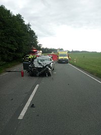 Při střetu motocyklu a osobního automobilu došlo ke zranění dvou osob. Hasiči spolupracovali se zdravotnickou záchrannou službou při ošetřování zraněných osob. Řidič motocyklu však následkům zranění podlehl. Zraněný řidič osobního automobilu byl transportován do nemocnice k dalšímu ošetření.
