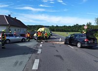Z důvodu nehody dvou osobních automobilů byla uzavřená silnice I/37 u Lukavice. Jedno z vozidel skončilo po nehodě mimo komunikaci v plotě. Jedna zraněná řidička skončila v péči zdravotníků, druhá řidička byla bez zranění. Přesto byly obě odvezeny do nemocnice k vyšetření. Zasahující hasiči odstranili následky nehody, odpojili baterie, aby nedošlo k požáru a zasypali uniklé provozní kapaliny.