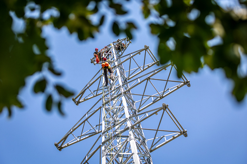 Hasiči-lezci cvičili ve Sviadnově na nově budovaných stožárech vysokého napětí