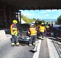 Jednotky profesionálních hasičů ze stanice Teplice a sboru dobrovolných hasičů Žalany, zasahovaly krátce po šestnácté hodině ve Rtyni nad Bílinou, kde osobní vůz narazil do betonového zátarasu. Hasiči na havarovaném vozidle provedli protipožární ochranu, zasypali uniklé provozní kapaliny sorbentem a pomohli s transportem zraněné osoby do vrtulníku ZZS Ústeckého kraje.