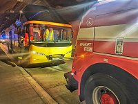 Nepojízdný autobus plný lidí odtáhli hasiči z tunelu Panenská pomocí speciálního vyprošťováku