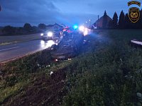 Poblíž obce Horní Lapač skončilo osobní vozidlo po nehodě s kamionem na střeše ve škarpě