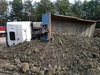 Dvě jednotky hasičů zasahovaly u Třebechovic pod Orebem na Královéhradecku v lokalitě pískovny. Došlo zde k převrácení nákladního automobilu se zeminou.