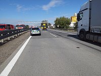 Dnes před polednem jsme vyslali jednotky k vážné nehodě kamionů na dálnici D2 ve směru na Brno. Provoz dálnice byl omezen.