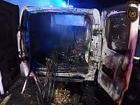 Jednotka z centrální stanice v Uherském Hradišti a dobrovolné jednotky z Koryčan a Buchlovic vyjížděly čtrnáct minut po půl sedmé večer k požáru dodávky na silnici E 50 (křižovatka na Stupavu a Staré Hutě.)
