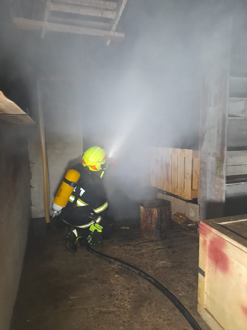 K požáru kůlny u bytového domu v Hostinném vyjížděly tři jednotky hasičů