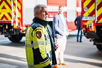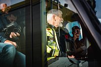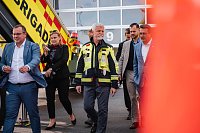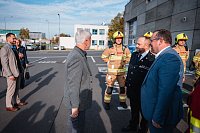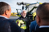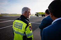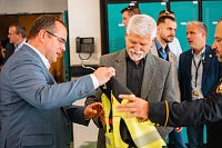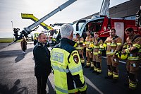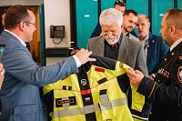 Prezident Petr Pavel navštívil letištní hasiče v Praze. Dostal zásahový oblek a svezl se Pantherem