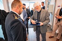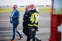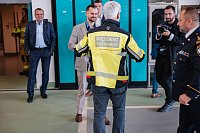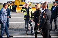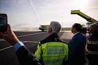 Prezidenta přivítal ředitel letištních hasičů Pavel Hošek, který mu předal pamětní plaketu k osmdesátému výročí založení jednotky. Jako další symbolický dar obdržel Petr Pavel speciálně ušitý zásahový kabát od české firmy GoodPro, která se specializuje na výrobu ochranných oděvů pro záchranné složky.