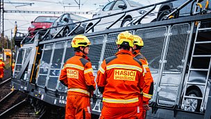 Hasiči Správy železnic zasahují od ranních hodin v Kolíně, kde došlo k vykolejení dvou nákladních vagónů. Jeden převážel osobní auta.