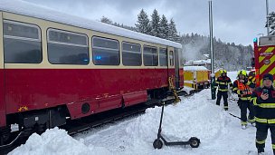 Drážní hasiči z Liberce trénovali zásah při požáru elektrokoloběžky ve vagonu zubačky