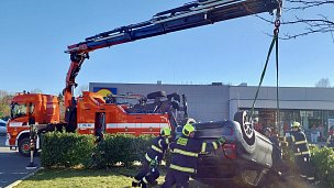 Liberečtí hasiči vyprošťovali zraněného řidiče z osobního automobilu. Ten skončil po dopravní nehodě mimo komunikaci převrácený na boku.
