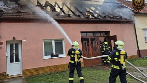 Šest jednotek hasičů zasahovalo v obci Suchá Loz na Uherskohradišťsku u požáru střechy a garáže rodinného domu