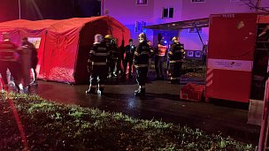 Noční požár bytovky v Příbrami způsobilo nabíjení elektrokoloběžky, pro evakuované hasiči stavěli stan