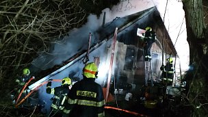 Při nočním požáru chaty v Chrudimi hasiči zachránili psa