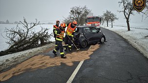 Dopravní nehoda osobního vozidla se zraněním osob zaměstnala v obci Řestoky na Chrudimsku profesionální hasiče ze stanice Chrudim.
