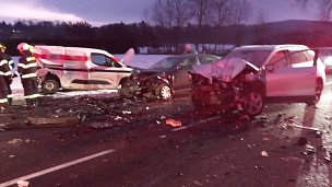 Na silnici I/35 mezi Konecchlumím a Úlibicemi zasahují hasiči u dopravní nehody tří osobních aut. Komunikace je neprůjezdná. Tři zraněné osoby si převzala do péče záchranná služba. Hasiči zajišťují místo události a budou odstraňovat následky nehody. Na místě jsou jednotky ze stanic Jičín a Hořice.