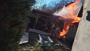 Při požáru zahradní chaty v Dolních Zálezlech nalezli hasiči několik tlakových láhví