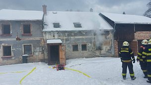 V Horní Poustevně na Děčínsku zasahují čtyři jednotky hasičů u požáru dřeva v kotelně domu