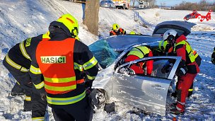 Při nehodě osobního vozu na Bruntálsku museli hasiči vyprostit řidiče