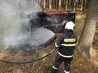 U obce Vrážná havaroval osobní automobil a začal hořet, řidičku se synem zachránil projíždějící muž