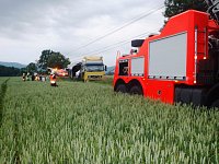 Hasiči použili vyprošťovací speciál Mercedes Actros Bizon a těžký jeřáb Demag/Terrex na postavení kamionu na kola ještě v příkopu – na okraji pole s dozrávající pšenicí. Bizon pak potáhl kamion navijákem po poli na kvalitnější plochu a maďarský řidič dokázal s havarovaným vozidlem popojet až na odstavnou plochu.