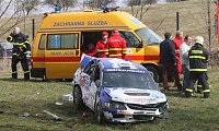 Na místě zasahovali i hasiči, kteří vyprostili řidiče závodního vozidla.