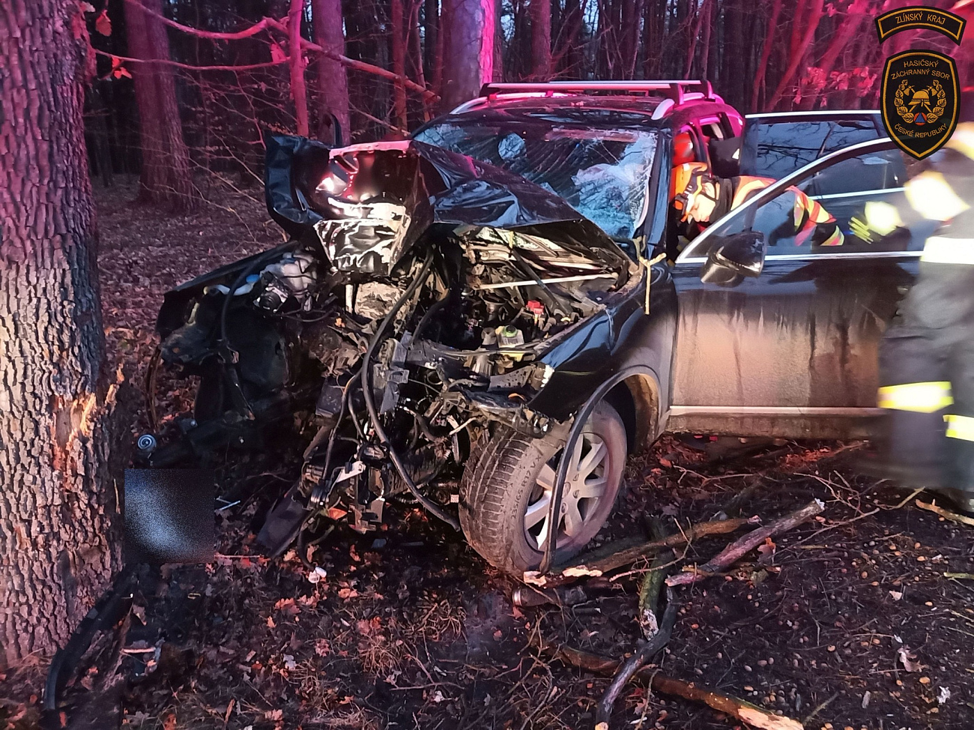 U obce Racková na Zlínsku zasahovali hasiči u dopravní nehody osobního vozidla, které narazilo do stromu