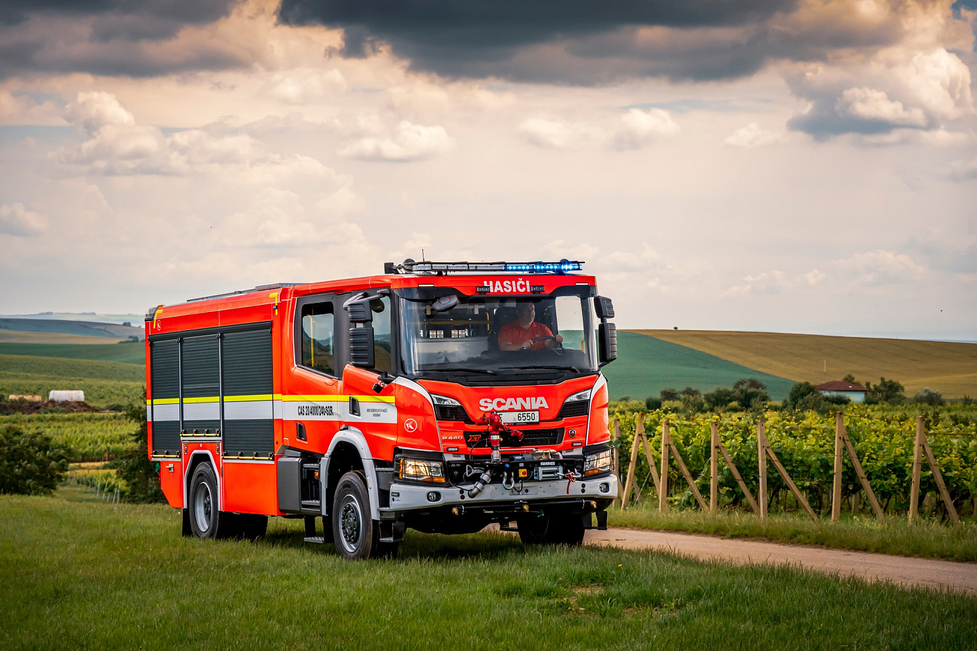 Hasiči v Hovoranech mají nového parťáka do akce – firma KOBIT-THZ obci za 8 763 667 korun včetně DPH dodala novou Scanii v zářivě červeném odstínu RAL 3024.