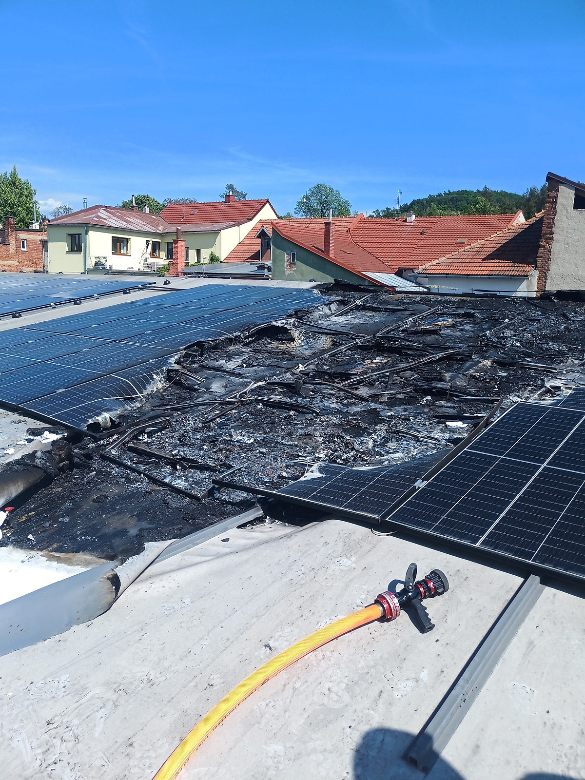 Krátce po druhé hodině odpoledne vyjížděli hasiči k požáru na střeše průmyslového objektu v Koryčanech na Kroměřížsku. Požár zde zasáhl fotovoltaické panely a částečně poškodil střechu.
