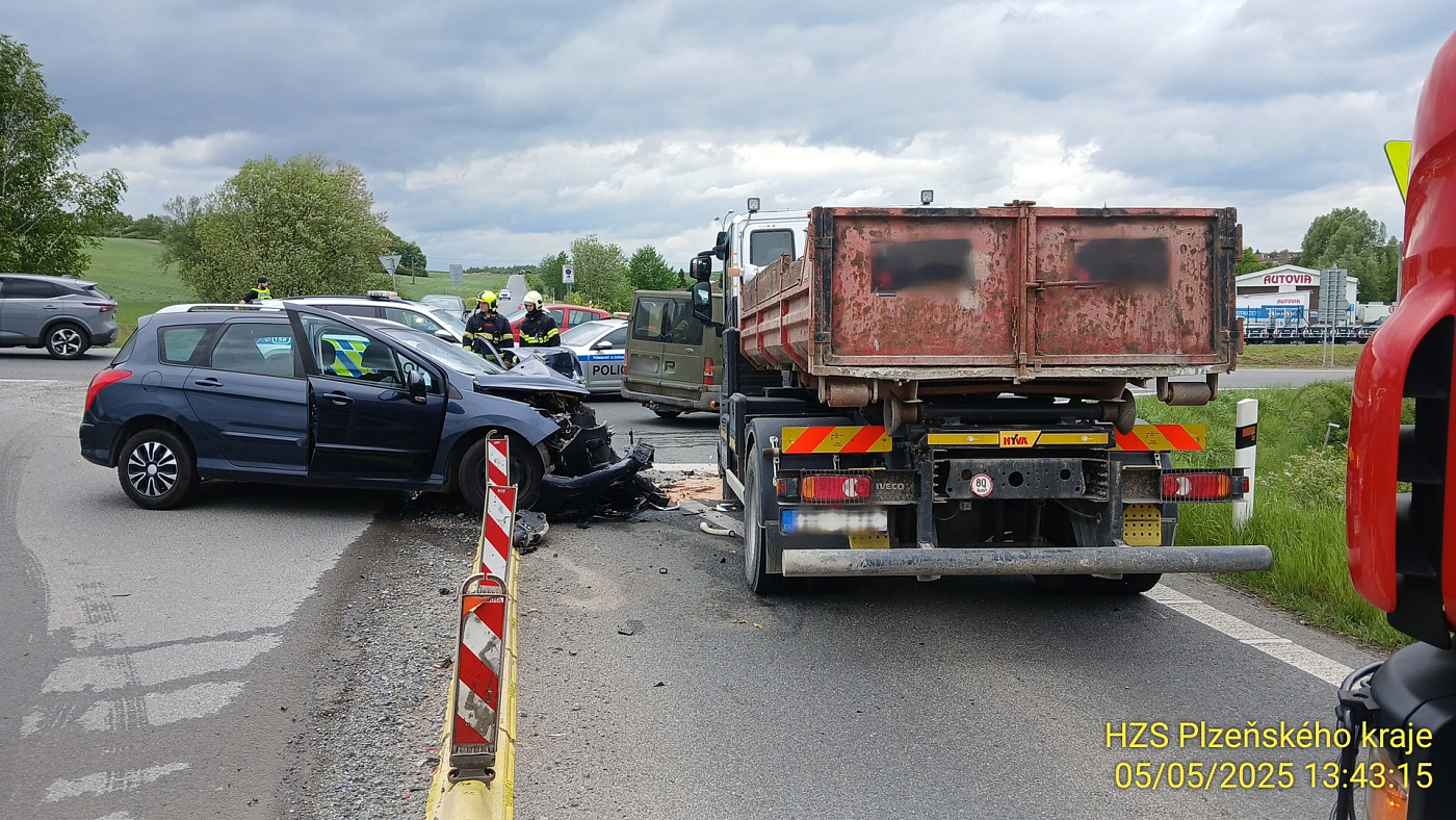 V Řepné ulici v Liticích se srazilo osobní auto s nákladním. Hasiči zajistili místo události a odpojili akumulátory. Jednu osobu záchranáři transportovali se středně těžkými poraněními do zdravotnického zařízení.