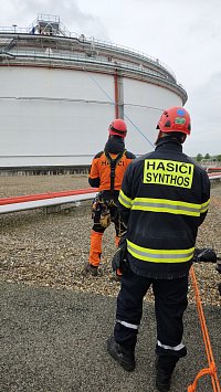 Úkolem lezců byla záchrana pracovníka údržby ze dna prázdné nádrže pomocí lezecké techniky (protiváha). Po zjištění zdravotního stavu poskytli lezci zraněnému první pomoc. Následně pracovníka zajistili do nosítek a transportovali ho lezeckou technikou na ochoz nádrže, odkud byl poté spuštěn do bezpečného prostoru mimo nádrž. Proběhlo vyhodnocení a posouzení dalších možností záchrany (kladkostroj, traverz). Děkujeme společnosti MERO ČR za vstřícnost a příkladnou spolupráci.