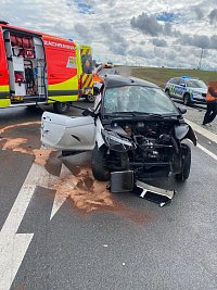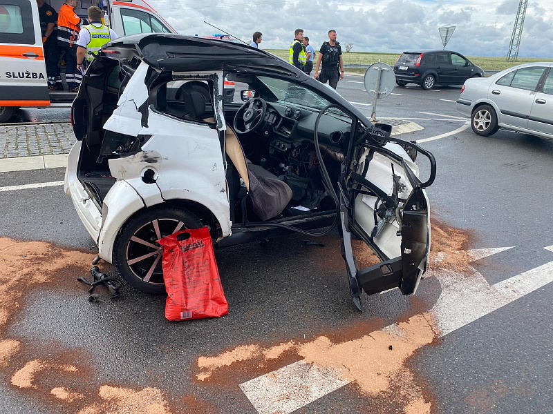 U obce Luníkov na Kladensku kamión sešrotoval malé osobní vozidlo, pro zraněné letěl vrtulník
