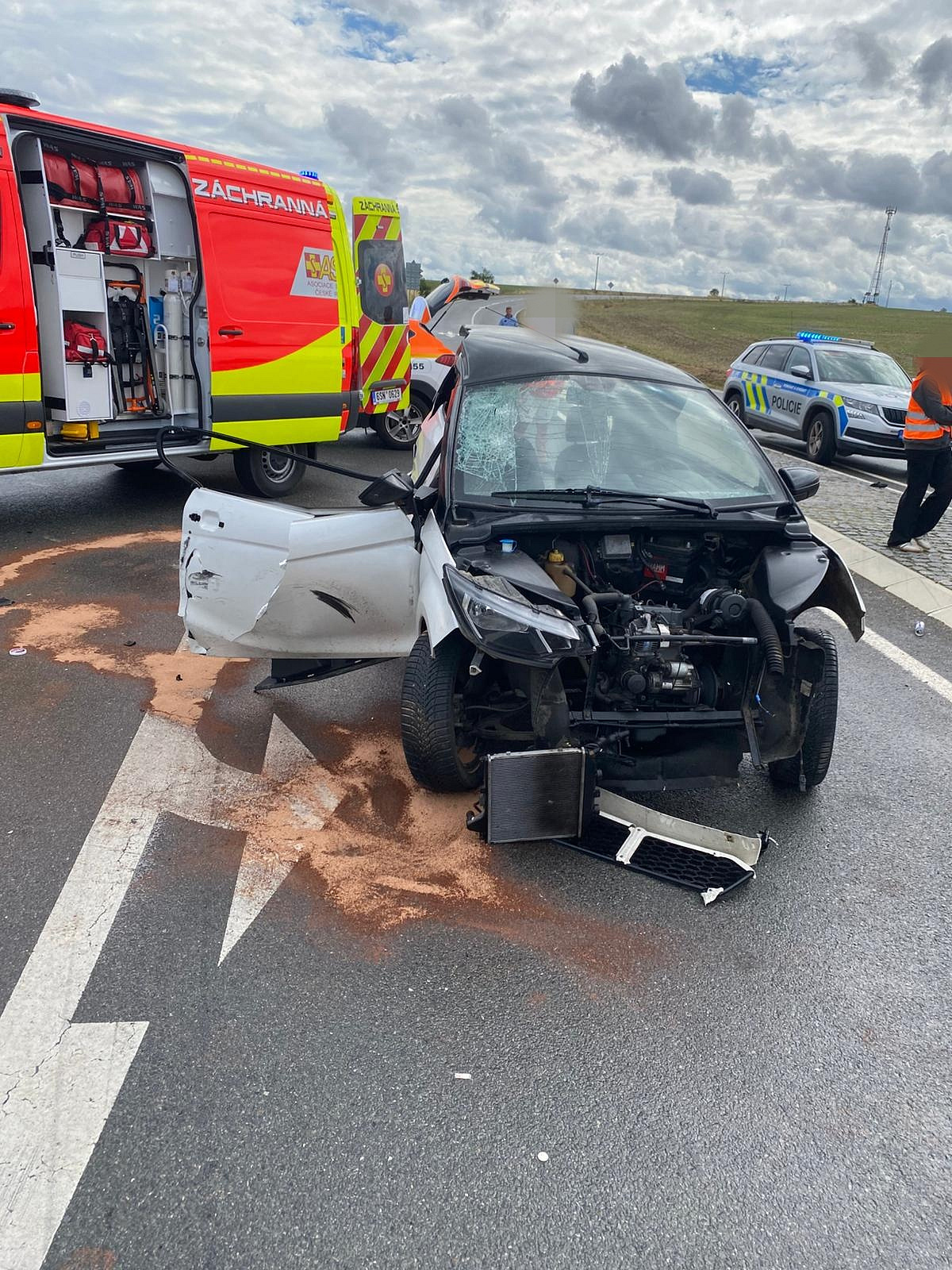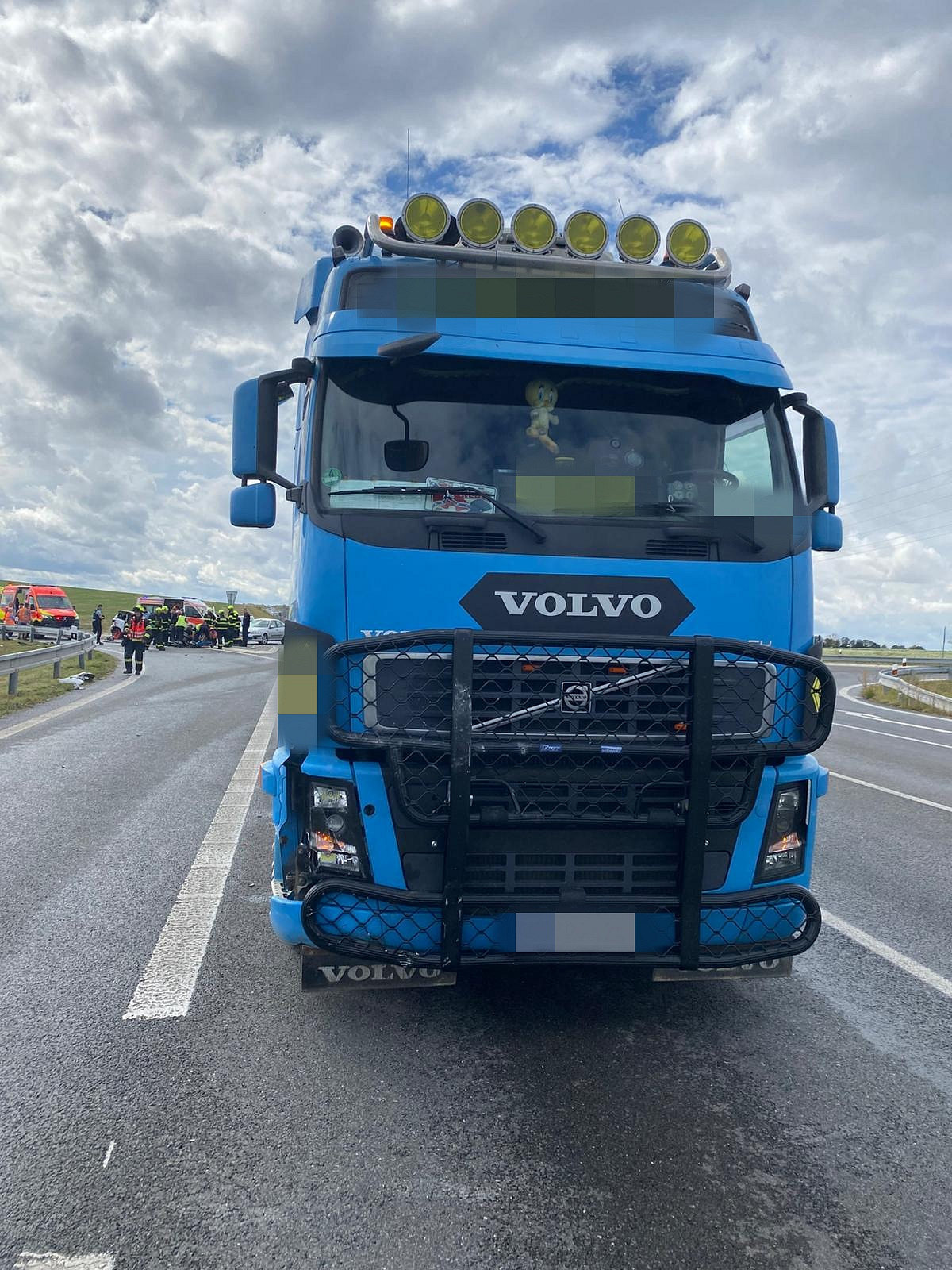 Na místo vyjela jednotka profesionálních hasičů ze Slaného a dobrovolná jednotka ze Zlonic. Při nehodě došlo ke střetu nákladního automobilu s osobním. V tomto případě byla velikost vozidel rozhodující. Zatímco řidič nákladního automobilu vyvázl z nehody bez zranění, osádka osobního automobilu takové štěstí neměla. Na místě musel zasahovat i vrtulník Letecké záchranné služby.