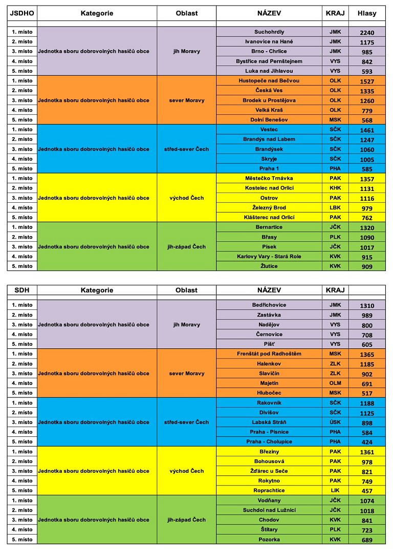 Padesát jednotek a sborů dobrovolných hasičů získalo ocenění za svou činnost v Anketě dobrovolní hasiči roku