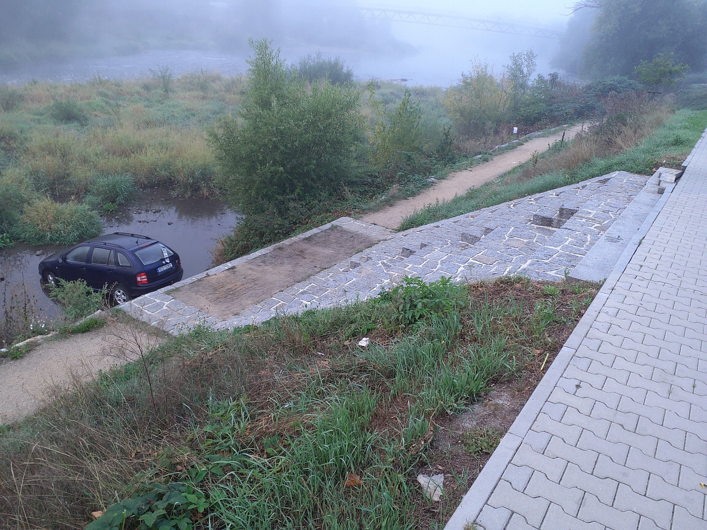 V Praze Radotíně profesionální hasiči ze stanic Radotín a Strašnice vyzvedávali pomocí automobilového jeřábu osobní vozidlo, které sjelo do řeky.