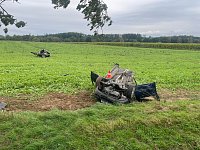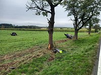 Mezi obcemi Sebuč a Chvalkovice na Náchodsku zasahují hasiči u vážné nehody osobního automobilu, které se doslova rozpáralo o strom. Zraněnou komunikující osobu předali do péče záchranářů.